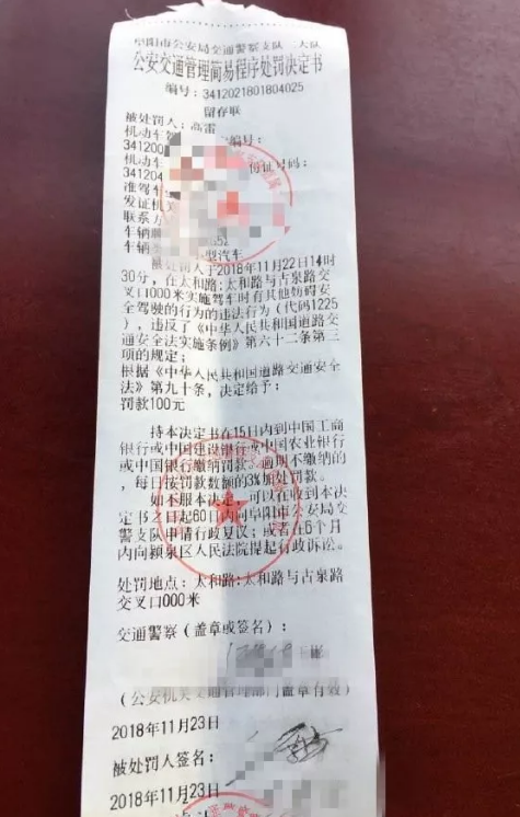 11月23日,违法司机高某到交警部门接受了处理。